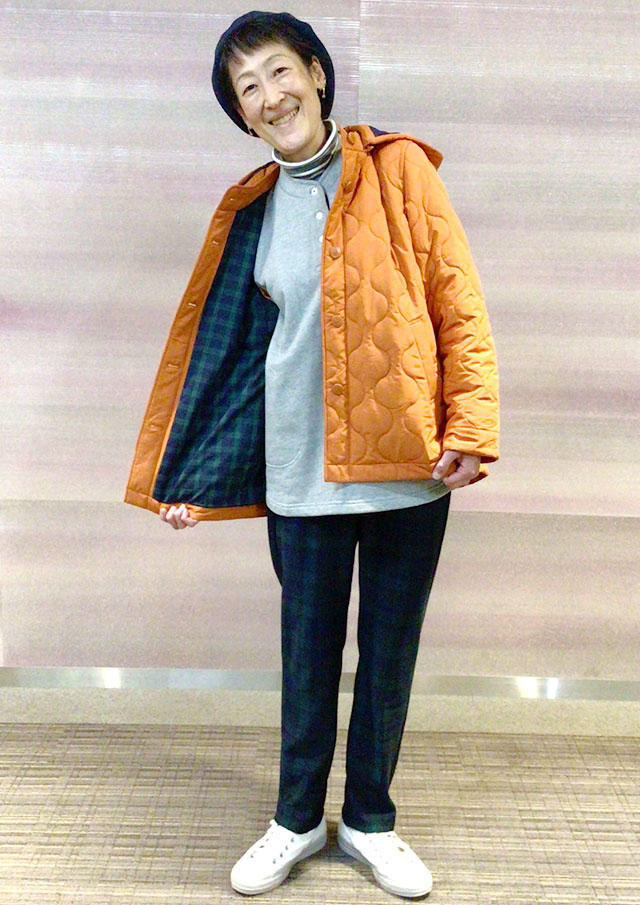 中綿ウェーブキルトフード着脱ジャケット