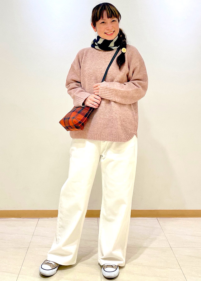 そんな日のコーデは、ふわふわピンク💗×オフホワイト🤍の柔らか配色で大人可愛く。