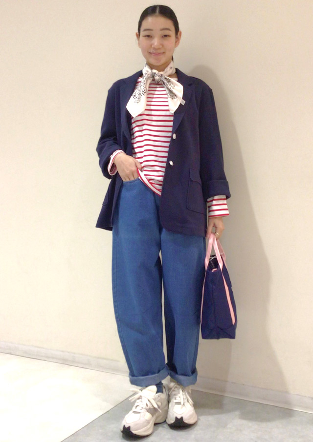 定番のボーダーにジャケットを1枚羽織れば、これだけで春のマリンコーデの出来上がり🌸