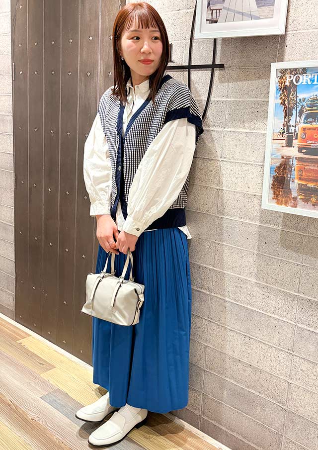 ざっくりニットベストを重ねて、ほんのりフレンチマリンテイストに⚓